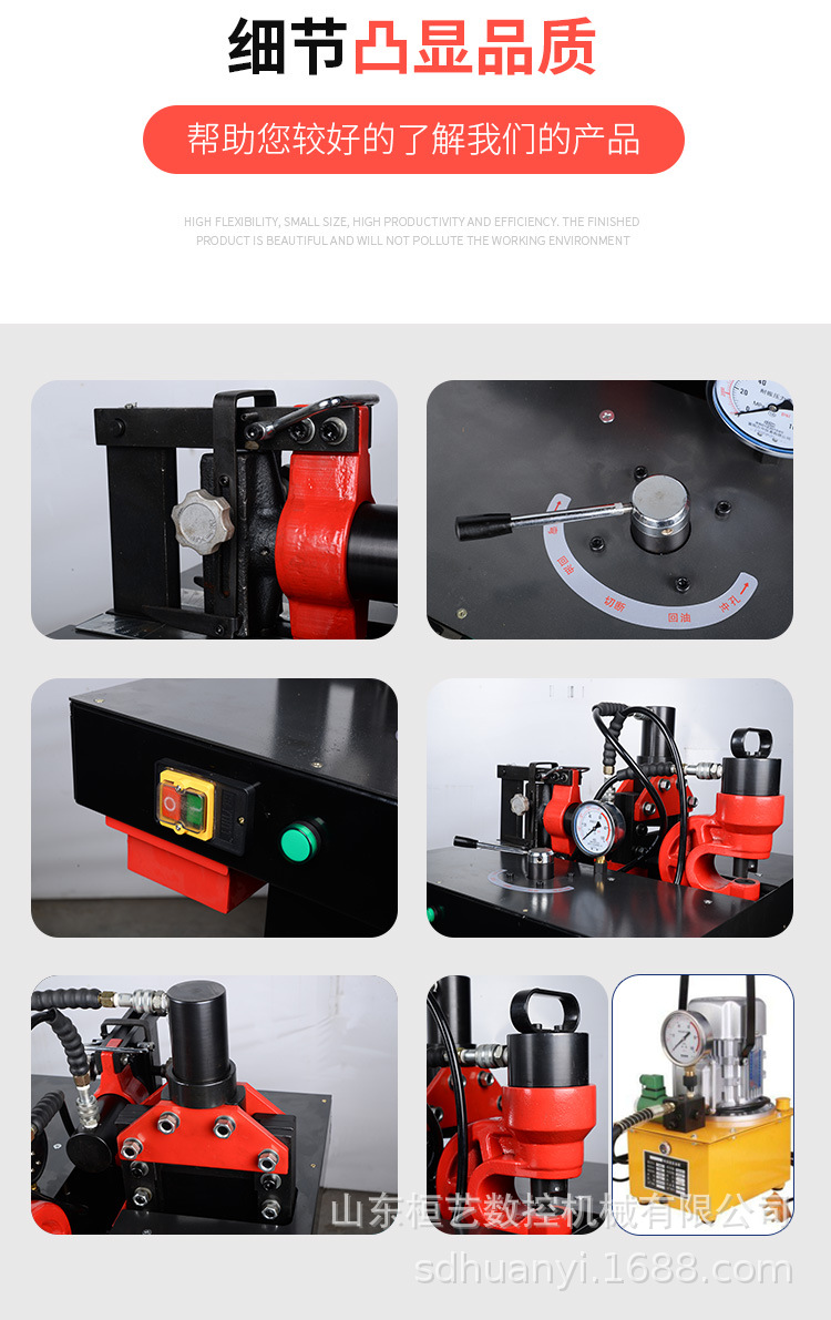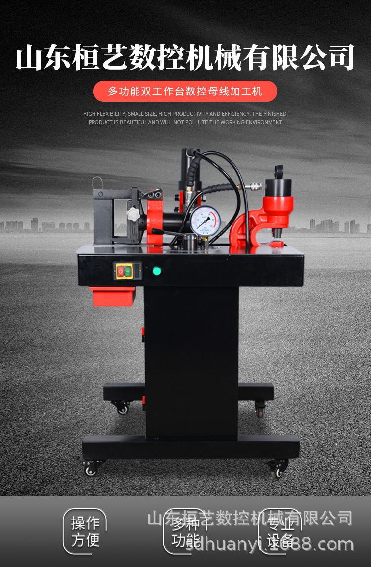 描述:本機安裝有沖孔、剪斷、折彎三個加工工位,主要功能為加工不同規格的銅、鋁母線。工作時,需要選用相應的加工工位,就能方便快捷的對銅、鋁排進行剪切、沖孔(圓孔、長圓孔),折平彎、立彎、U型彎,壓花、壓平、扭麻花、壓電纜接頭等不同的加工。?